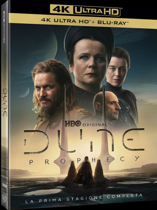 L’attesa è finita per i fan di Dune! Warner Bros. Discovery Home Entertainment, in collaborazione con HBO e Legendary Entertainment, annuncia l’uscita home video dell’attesissima serie drammatica HBO Original DUNE: PROPHECY: La Prima Stagione Completa in formato 4K UHD (anche edizione Steelbook), Blu-ray e DVD, disponibile dal 22 maggio 2025. Co-prodotta da HBO e Legendary Television, la serie – il cui grande successo ha già garantito la produzione di una seconda stagione – porta sullo schermo un’epica avventura sci-fi in sei episodi, accompagnata da oltre un’ora di contenuti extra, tra cui 5 extended featurette e un’esclusiva featurette inedita disponibile solo su 4K UHD, Blu-ray e DVD.