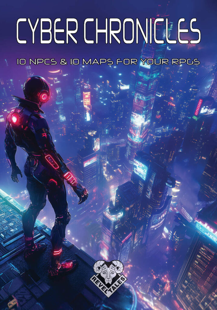 Anche Cyber Chronicles è composto da 28 pagine e contiene la stessa quantità di NPC e mappe, questa volta in aiuto di master/narratori per le loro sessioni/campagne in salsa cyberpunk e sci-fi.