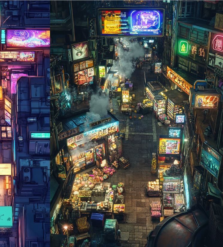 Le dieci mappe, che come nel modulo horror hanno le dimensioni di una pagina, offrono location come il cyber mercato, il mercato nero, un centro di ricerca, un circuito illegale, un tetto corporativo ed un ospedale. Le mappe sono ben dettagliate, alcune anche con la presenza di vita urbana e delle classiche insegne al neon e sono utilizzabili in maniera immediata nei GDR cyberpunk sopra citati e in titoli come Starfinder, The Expanse o Coriolis, offrendo spunti utili per creare scene e sessioni di gioco rapide. Ovviamente come per le mappe horror tutti i luoghi sono facilmente fruibili tanto al tavolo quanto sui vari VTT.