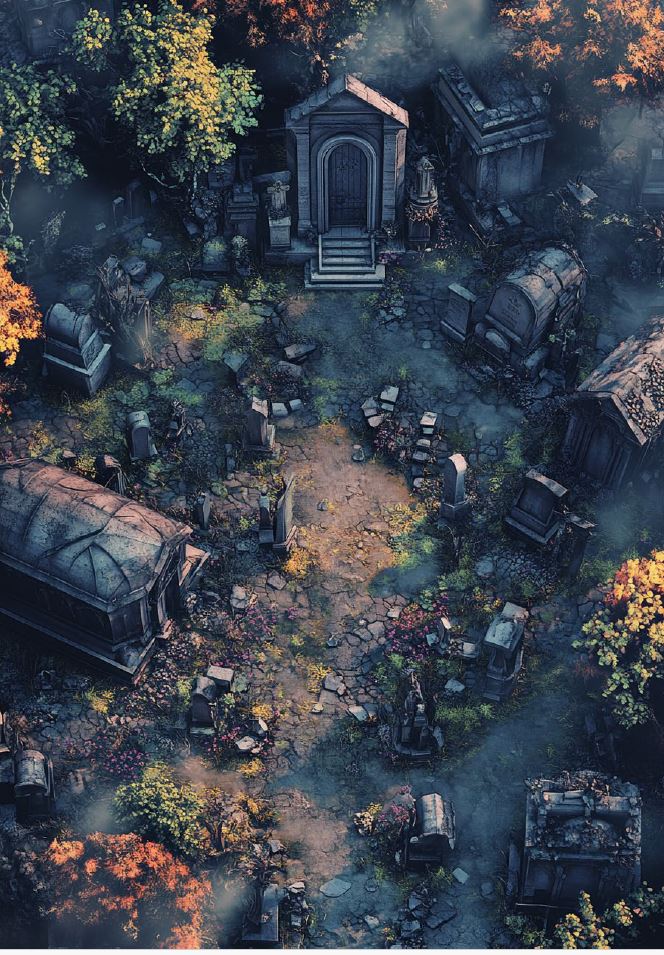 Le dieci mappe invece sono molto dettagliate e facilmente utilizzabili sia al tavolo che su un qualsiasi VTT (Virtual TableTop) come Foundry, Roll20 o Alchemy e spaziano tra grandi classici delle storie dell’orrore: dal cimitero abbandonato al campeggio solitario, dalla casa maledetta all’ospedale abbandonato, dalla città fantasma alla casa della strega. Le location sono ancora più versatili degli NPC e molte di esse possono tranquillamente trovare posto anche in sessioni/campagne non per forza horror e soprannaturali, inoltre possono anche essere facilmente abbinate ai personaggi presenti in questo manuale e fornire nuovi spunti narrativi.