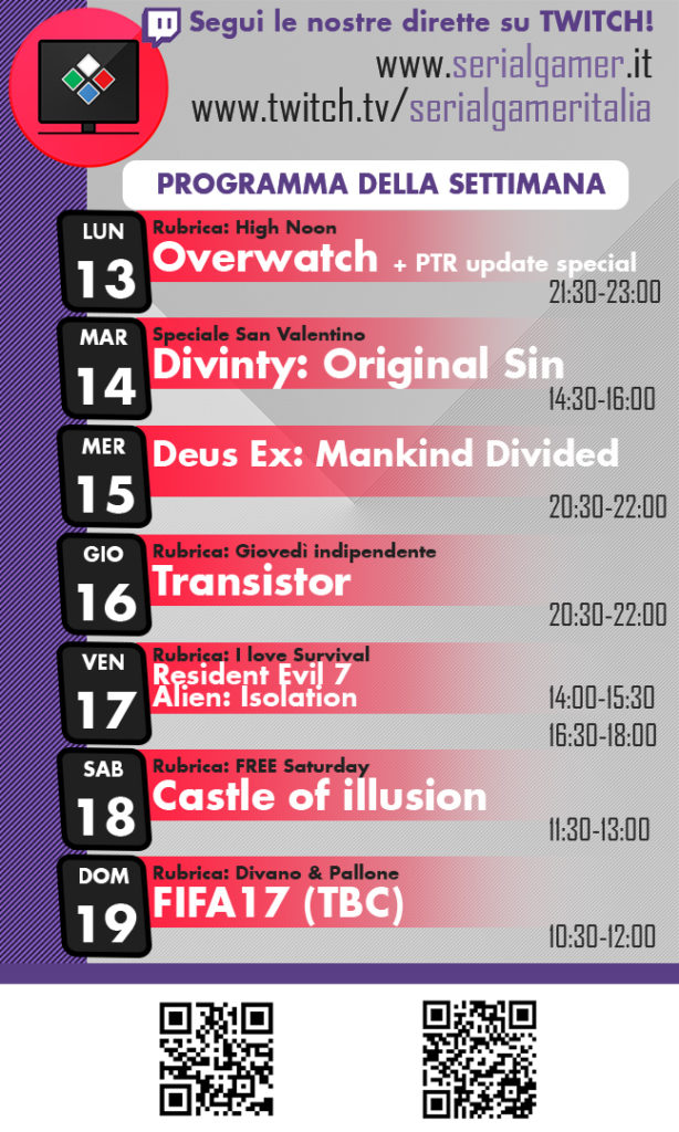 Come di consueto, inizia la settimana e vi proponiamo il programma delle nostre dirette sul canale Twitch.