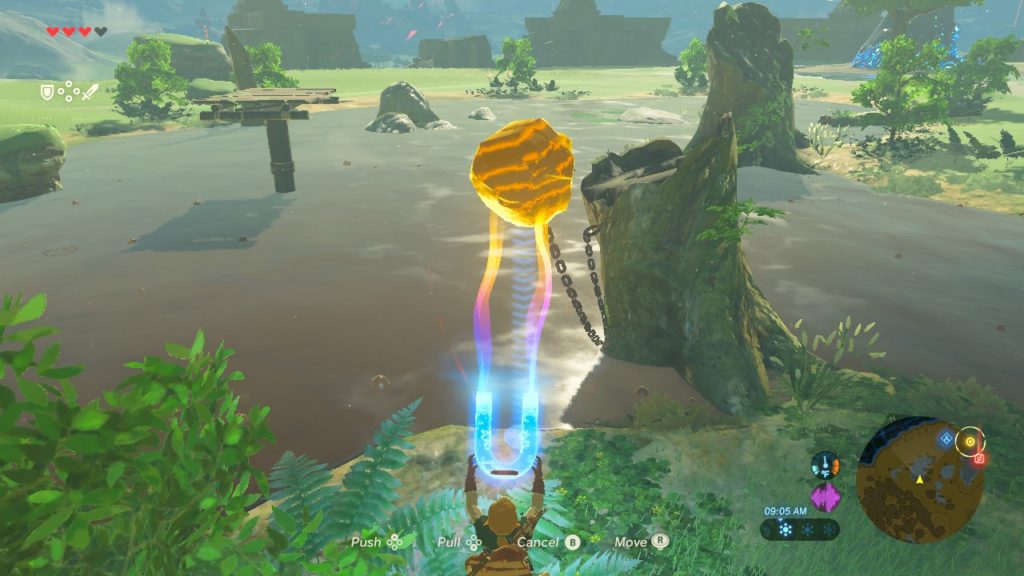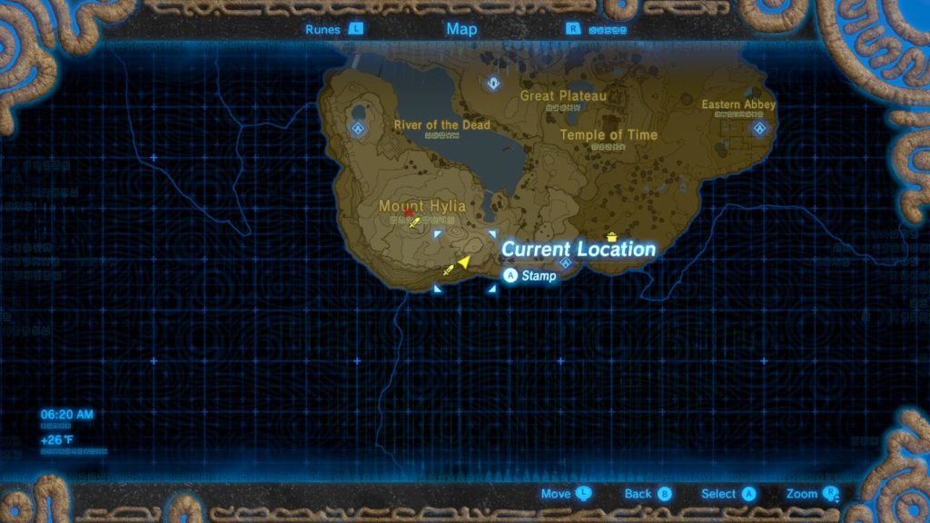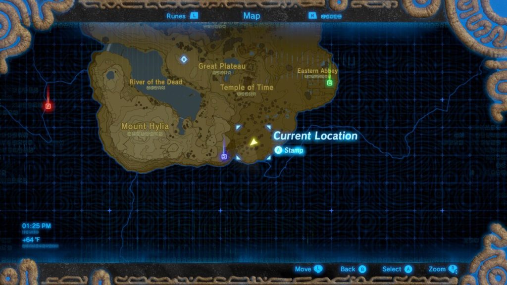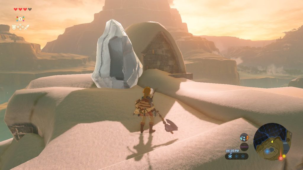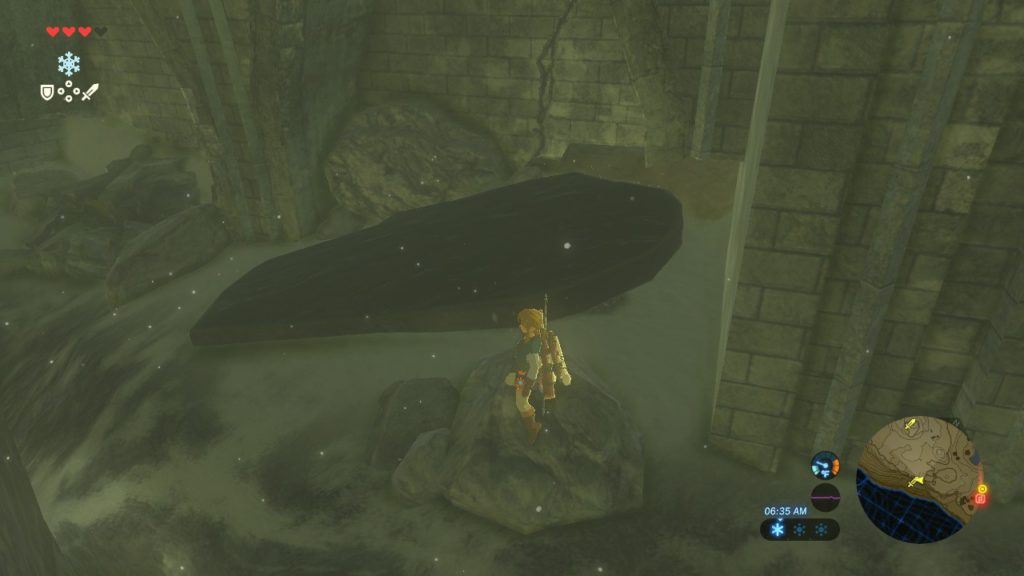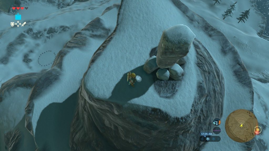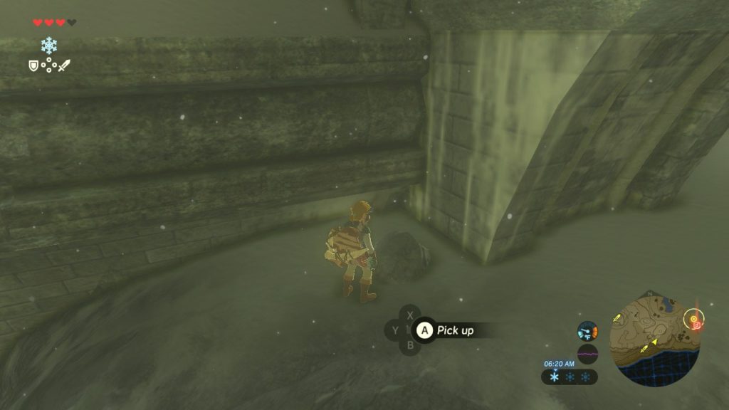 Monte Hylia – Controllate le mura esterne al di fuori del Sacrario Keh Namut, magari con l’aiuto del paracadute. Noterete una piccola nicchia con dei blocchi di pietra. Dovete trovare un blocco di metallo nei dintorni e piazzarlo come da immagine con Runa Magnesis.