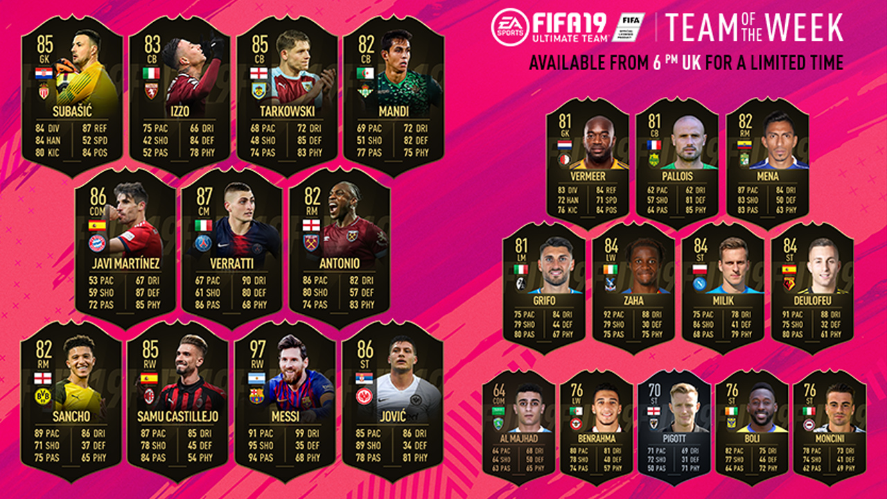 Pochi minuti fa EA Sports ha reso disponibile su FIFA 19 Ultimate Team la nuova squadra della settimana.