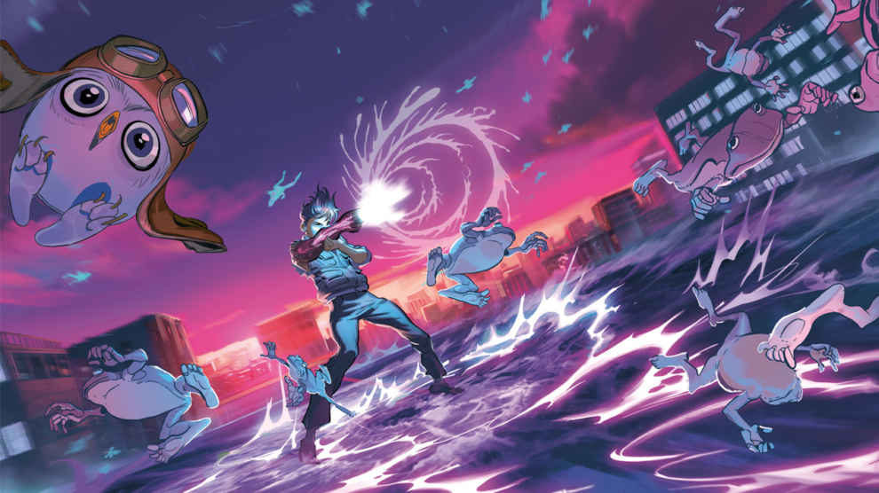 Il primo volume di Jagan mette sul tavolo molte premesse. La trama è qualcosa che abbiamo già sentito molte altre volte in salse diverse e per tutto il primo volume si avverte la pesantezza della linearità della trama. Linearità che però comincia a creparsi nel momento in cui Shintaro spara un colpo in faccia ad un gufo parlante, che si presenta come il tipico animale spalla arrivato per avvertirlo con un certo entusiasmo che la sua vita sta per cambiare e lui per diventare un eroe, capace di salvare il mondo dalle rane parassita. Il gufo, che in seguito a questo primo incontro scontro riappare comunque, è un concentrato di menefreghismo e nichilismo che ben si adatta all’indole del protagonista.