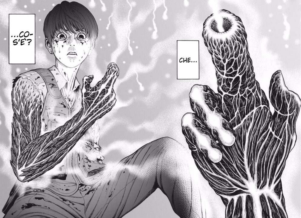 Il tratto attinge a piene mani da Devilman e Kiseiju, quest’ultimo anche citato nel primo volume per una similarità di trama.