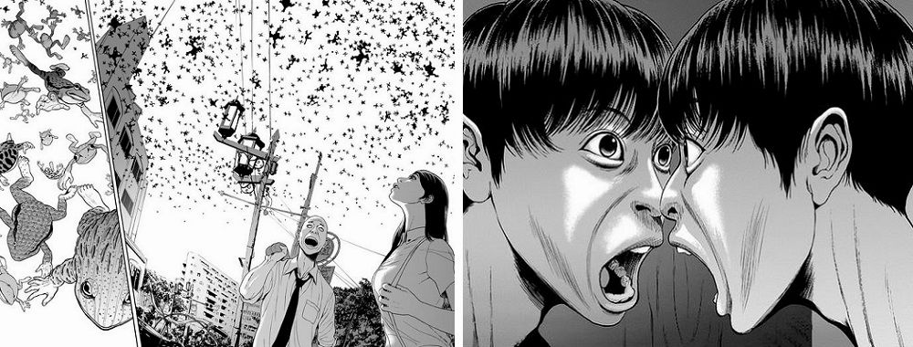 Shintaro è insomma un antieroe. Tutti i personaggi che vengono presentati e che contornano la vita del protagonista sono ben delineati, ma solo superficialmente, evitando così al lettore un reale attaccamento emotivo con uno qualsiasi di questi. Le loro morti o i loro desideri ci lasciano totalmente apatici. Neppure il flashback che ci spiega come Shintaro abbia conosciuto la ragazza con cui convive da quattro anni ci permette di provare un vero dispiacere nel momento in cui anch’essa viene soggiogata da una rana.