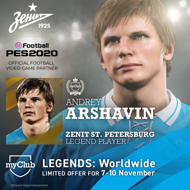 Questo annuncio fa seguito a quello della presenza, già da oggi, dell’ex stella dello Zenit, Andrey Arshavin tra le Leggende di PES in myClub.
