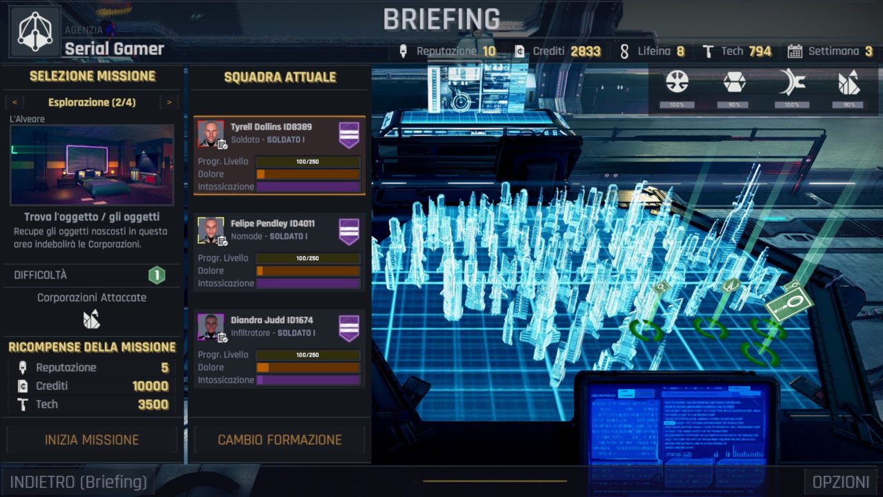 Ogni zona ci porrà di fronte a nuovi mercanti, loot ed avversari da affrontare in un combattimento a turni molto old-school in cui anche il positioning dei propri cloni da battaglia sarà fondamentale; tutte queste cose renderanno sempre più potenti la nostra personalissima Agenzia, che diverrà sempre più famosa, armata ed esperta nell’affrontare le varie criticità affrontabili sia nella Modalità Storia, in cui vi sarà un limite di 75 settimane giocabili, sia nella Modalità Infinita, la quale non ha limiti di tempo né obiettivi particolari se non quella di allungare la longevità del titolo. Ad arricchire il tutto vi saranno anche le missioni secondarie, commissionate direttamente da un personaggio chiamato Diplomatico, le quali saranno totalmente opzionali e di conseguenza anche del tutto mancabili.