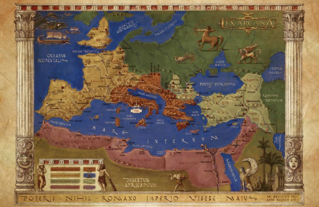 Ci sono molte cose da prendere in considerazione in un’ambientazione come quelle fornita, si pensi che si parla approfonditamente di economia, vie di comunicazione, suddivisione geografica, storia romana rivisitata in chiave ucronica e fantasy, esercito romano con tanto di quali e quante corti e legioni sono presenti nelle varie prefetture.