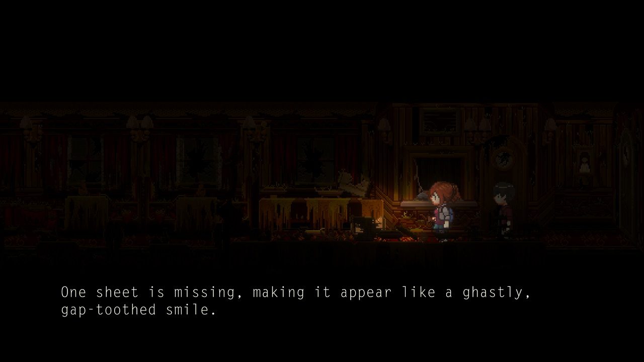 Questa “semplicità” é la croce e delizia del titolo, che in sostanza rimane “leggero”: basilare nelle meccaniche, di facile approccio, ma anche non molto impegnativo in termini di gioco e non troppo impegnato per quanto riguarda sceneggiatura, personaggi, trama, e spaventi. Invece è molto apprezzabile l’estetica, la mappa di gioco è tutto sommato piccola ma ben curata, dettagliata in pregevole pixel art, gli sprite dei personaggi in stile anime non brillano per originalità ma si presentano ben fatti (per quanto riguarda altri oggetti in-game invece sarebbe stata gradita forse una maggiore uniformità d’intenti); comparto sonoro all’altezza, che riesce a caratterizzare bene l’atmosfera cupa di un treno fantasma, con cigolii, rumori e macabri versi.