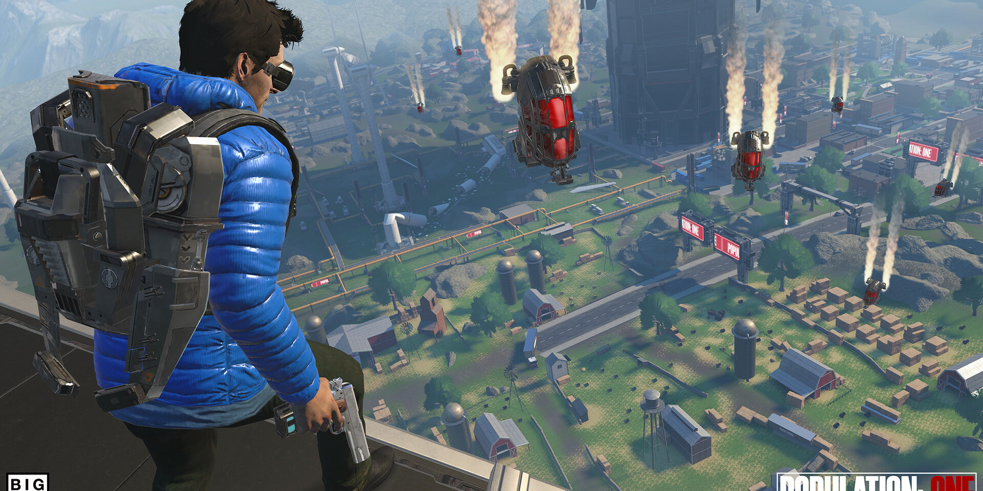 Come ogni moderno battle royale, POP: ONE fa calare i giocatori all’interno di un’enorme mappa (circa un chilometro quadrato), dove si scontreranno con gli altri partecipanti. Ma POP: ONE va oltre le classiche regole del genere, concentrandosi sul movimento e sulle scelte del giocatore attraverso il “Vertical Combat System”, che permette di arrampicarsi su qualsiasi cosa e di volare ovunque. Inoltre, quando è il momento di cercare un riparo, ci si può costruire un rifugio. I veterani delle battle royale cercheranno la vittoria basandosi sul controllo della mappa, appostandosi su punti sopraelevati che diano loro una perfetta panoramica della situazione.