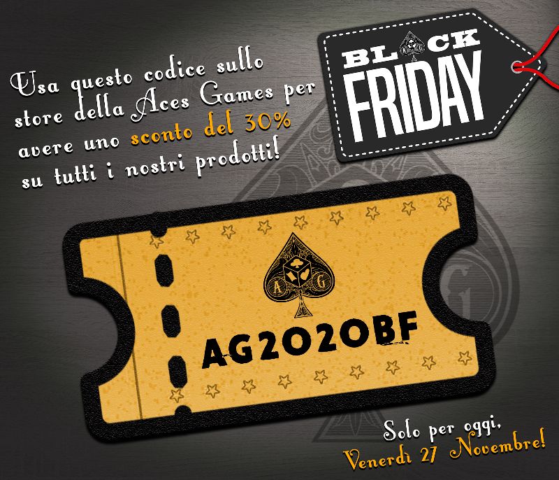 Sfruttando il codice che trovate qui in basso, avrete uno sconto del 30% su TUTTI i nostri Giochi di Ruolo e per tutta la durata di oggi, Venerdì 27 Novembre!