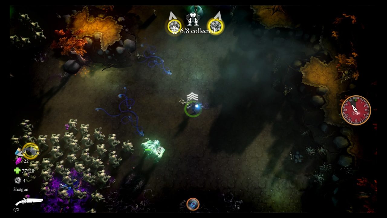 Nei panni di uno dei nostri bizzari eroi pseudo-storici, tutti dotati di diverse caratteristiche ed abilità, ci dovremo avventurare all’interno dei tre capitoli principali di quella che inizialmente sarà la trama e che poi fungerà ottimamente per il free roaming virtualmente infinito del titolo; essi sono Arkham, Fattoria e Caverne Dimenticate, e variano di difficoltà man mano che si avanza soprattutto per quanto riguarda la conformazione del territorio che resta comunque proceduralmente generato. Ogni volta che partiremo potremo scegliere in totale libertà il nostro percorso, anch’esso casuale, optando le missioni tra cinque differenti tipologie: Chiudere le Fratture dell’Etere, Distruggere le Statue, Riparare l’Inibitore, Sconfiggere il Mostro d’Elite e Sopravvivere all’Alveare, tutte cose che aiuteranno la nostra task force fantascientifica a salvare il mondo e li condurrà di fronte ai boss principali. Tutto questo dovrà essere fatto nel minor tempo possibile, altrimenti aumenterà il livello dell’Orologio del Giudizio, sbloccando ogni volta nuovi Rituali Oscuri che renderanno i mostri lovecraftiani via via sempre più forti rendendo la vostra vita un vero e proprio inferno.