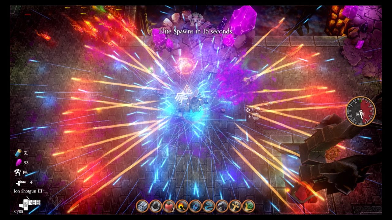 Tesla Force a livello tecnico ha qualche problemino non indifferente che talvolta ha inficiato sull’esito di alcune partite che stavo intraprendendo; spesso infatti mi è capitato che il gioco crashasse di punto in bianco per l’eccessivo caos presente su schermo, cosa che però in un titolo basato sulla sopravvivenza alle orde e su potenziamenti in pieno stile bullet hell non è accettabile. Se a questo si aggiunge che riaccendendo il tutto si andava a modificare il percorso e talvolta addirittura a rimuovere un potenziamento appena guadagnato, capite bene il mio disappunto sulla questione.