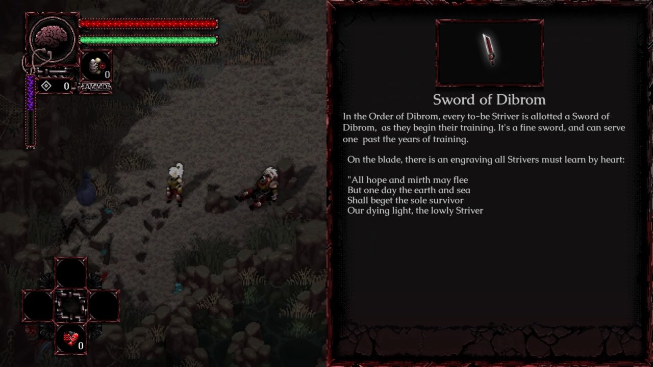 Morbid: The Seven Acolytes ha dinamiche di gioco tipiche di un qualsiasi soulsbourne, sebbene più semplici e meno numerose. Il nostro personaggio non sarà infatti dotato di numerose caratteristiche, né tantomeno dovrà scegliere classi e/o magie di partenza, ma sarà semplicemente dotato di quattro barre principali che lo accompagneranno per tutta la durata della nostra avventura, ovvero: Salute, la nostra resistenza ai colpi; Stamina, il vigore; Sanità Mentale, che inciderà sia sulla morte che sull’esperienza ricevuta abbattendo nemici, ed infine Cervello, che una volta riempita genererà un Punto Abilità che contrariamente ai titoli d’ispirazione qui non potrà essere perso a causa della propria morte. Questo riduce le meccaniche al minimo indispensabile, ovvero quello dell’equipaggiarsi di una delle varie armi del gioco, talvolta modificabili grazie alle Rune, e partire alla volta del proprio destino affrontando terribili creature lovecraftiane nel tentativo di arrivare il più indenni possibile al prossimo Santuario. Una cosa che detta così potrebbe sembrare da poco, ma che combinata ad un game design intricato e ben pensato ed ai boss presenti oltre agli Accoliti riesce a risultare una sfida decisamente appagante e divertente.