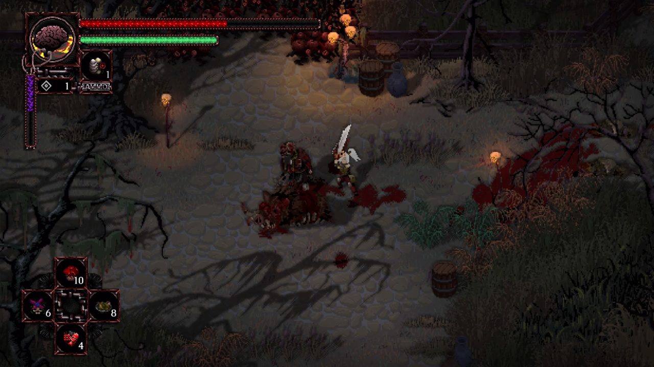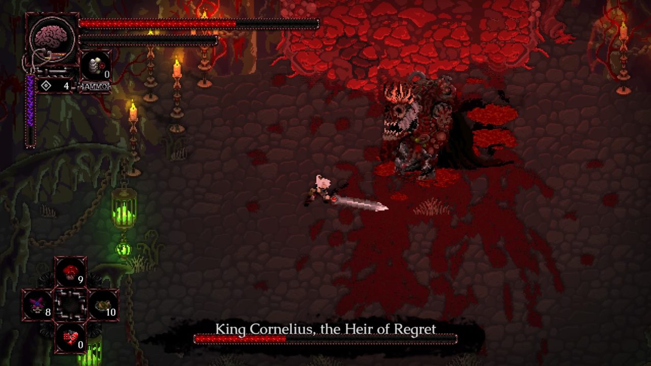 Morbid: The Seven Acolytes dal punto di vista artistico è una vera meraviglia, sia per il comparto grafico che quello sonoro. Le ambientazioni, i nemici ed i boss sono stupendamente raccapriccianti, dando un’aura macabra caratteristica al titolo che esprime al meglio la decadenza putrescente a cui Mornia è sottoposta. Un’opera d’arte in pixel accompagnate da tracce musicali spettacolari ed uniche per ciascun ambiente o boss fight. I ragazzi di Still Running con un budget ridotto sono riusciti a tirare fuori dal cappello un lavoro di spicco, sebbene con una sola criticità che purtroppo dipende dalla conformazione stessa del game design: in questi giochi bidimensionali è difficile rendere ottimamente la profondità cosa che incide sia sull’orientamento sia sulle hitbox nemiche, che come ho già detto sono già di per sé un po’ rivedibili. Una volta entrati nell’ottica però diviene sempre più semplice da intuire nonostante il bias cognitivo dovuto al muoversi tridimensionalmente in un ambiente bidimensionale.