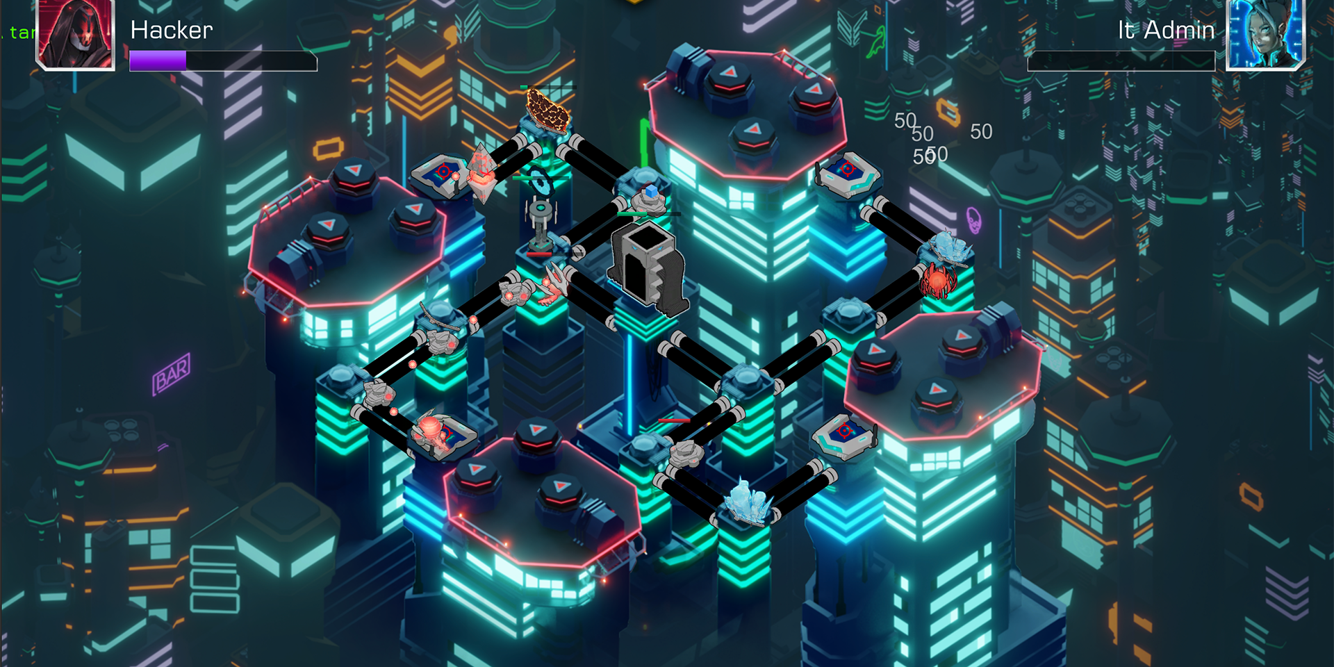 A difendere la torre, c’è un altro personaggio che il giocatore può selezionare, ovvero un IT Manager che ha il controllo dell’infrastruttura e dovrà difendersi con altre armi, tra cui il server del quale potrà accrescere la potenza aumentando i pacchetti di informazioni che il backup può contenere, antivirus tower che distrugge solo virus, i firewall, un’arma che gli consente di bloccare ogni tipo di attacco nemico. Il gioco è a più gradi di difficoltà. All’inizio l’IT manager avrà solo pochi bot e virus da cui difendersi, poi nei livelli successivi, aumenteranno le difficoltà che si troverà ad affrontare.