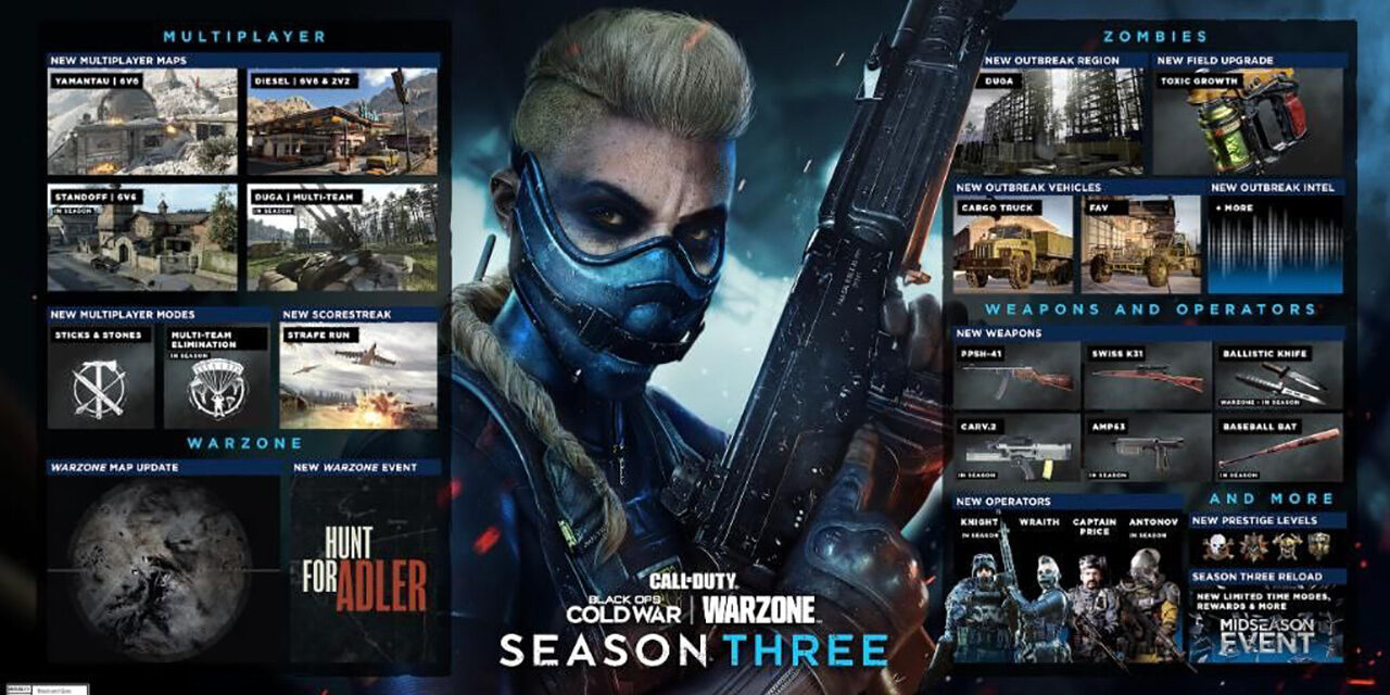 Nelle scorse ore Activision ha pubblicato la roadmap ufficiale della Stagione 3 in arrivo su Call of Duty: Warzone e Call of Duty Black Ops: Cold War.