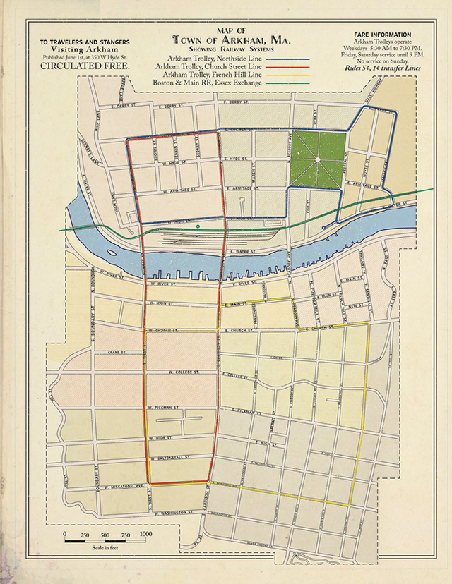 Arkham, la città immaginaria creata da H. P. Lovecraft, è da sempre uno dei pilastri dell’immaginario del Mythos, ma in questo manuale assume una dimensione quasi totalizzante. Il lavoro svolto dagli autori non si limita alla citazione o all’omaggio, ma costruisce una continuità storica coerente che integra narrativa, cronologia e gioco di ruolo in un’unica struttura organica. La città viene presentata come un organismo storico complesso, la cui identità nasce dall’intreccio tra puritanesimo coloniale, crescita industriale e decadimento morale, elementi che contribuiscono a creare una tensione costante tra normalità apparente e orrore latente.