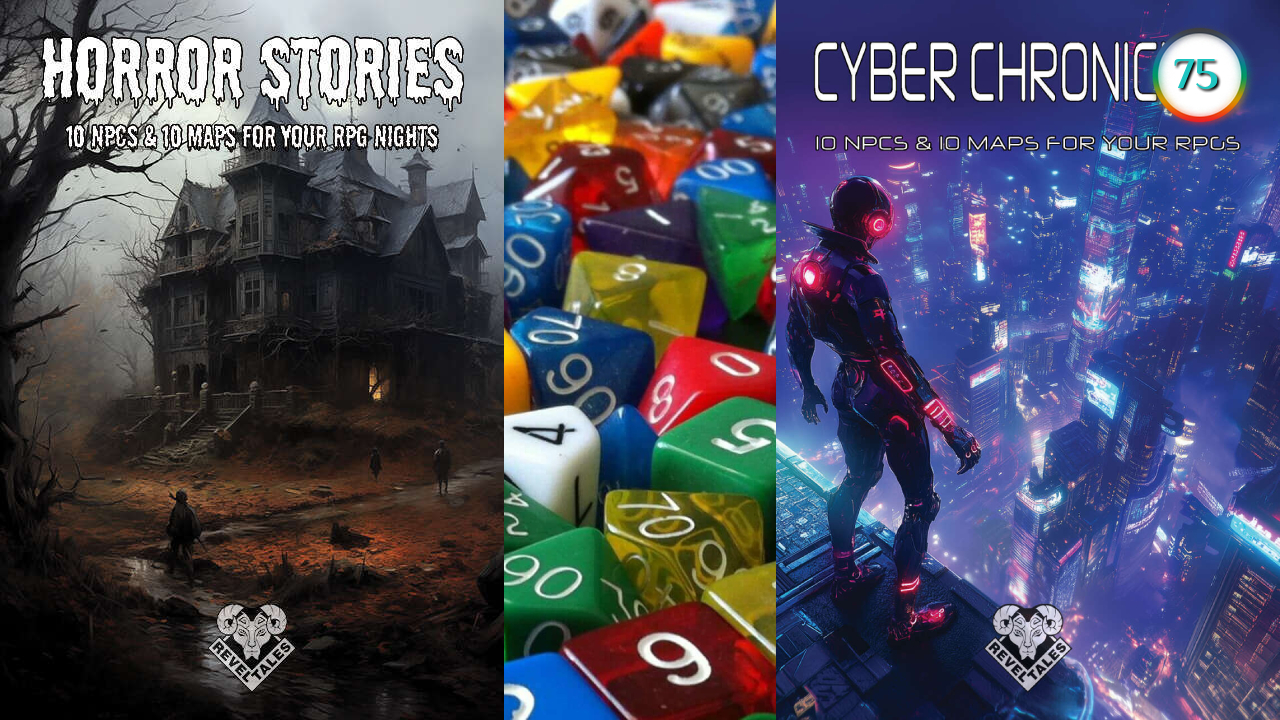 Pubblicati in digitale su DriveThruRPG, Horror Stories e Cyber Chronicles sono due supplementi per giochi di ruolo da tavolo, disponibili in italiano ed in inglese creati dal collettivo italiano Revel Tales. Horror Stories contiene dieci NPC e dieci mappe che possono essere utilizzati in un qualsiasi GDR che tratti temi soprannaturali e per ogni genere di storia dell’orrore, mentre Cyber Chronicles propone lo stesso numero di NPC e mappe ma in chiave Cyberpunk e futuristica.