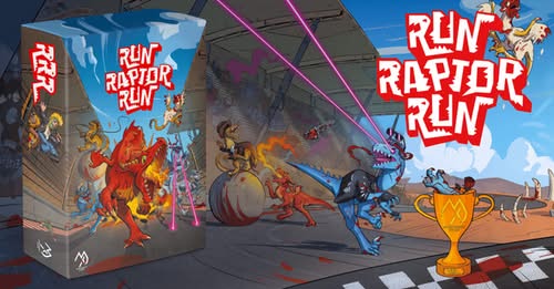 In 𝙍𝙪𝙣, 𝙍𝙖𝙥𝙩𝙤𝙧, 𝙍𝙪𝙣! i giocatori e le giocatrici avranno la possibilità di scegliere tra diverse carte raptor, ispirate a personalità della cultura pop, e dovranno affrontare un circuito composto da tessere in continua evoluzione, piene zeppe di trappole mortali e di pericoli emozionanti, le quali permetteranno loro di accumulare artefatti magici in una gara brutale, fumettistica e ultraviolenta.
