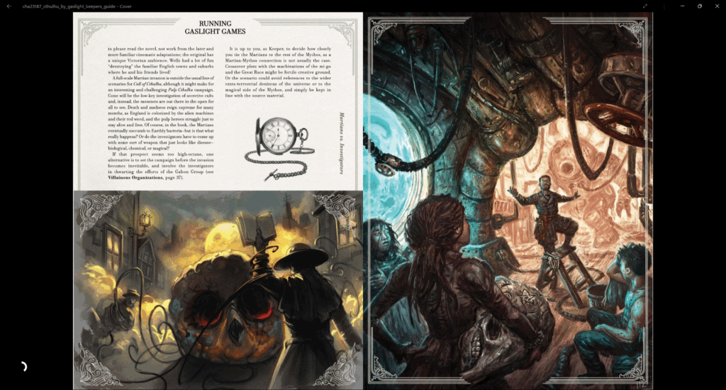 In conclusione, Cthulhu by Gaslight – Keeper’s Guide è più di un supplemento: è un viaggio, un manuale di storia gotica, una chiave per riscrivere l’epoca vittoriana come palcoscenico del terrore cosmico. È un’opera che pretende molto dal lettore/Custode, ma offre, in cambio, il potere di costruire campagne memorabili, dense di atmosfera, moralmente complesse e profondamente lovecraftiane. Un acquisto imprescindibile per chi desidera portare il mito in una Londra dove il vero mostro non è sempre quello con i tentacoli — ma spesso è l’uomo stesso, con la sua miseria, la sua fame e il suo desiderio di potere.