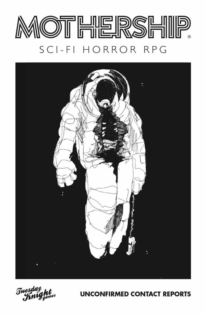 L’ultimo manuale di gioco è Unconfirmed Contact Reports, 56 pagine in formato zine, che è in pratica il bestiario di Mothership e contiene una cinquantina tra mostri, aberrazioni, mutanti, bestie, alieni e possibili nemici che potranno essere utilizzati per rendere (ancora) più difficoltosa la sopravvivenza dei personaggi interpretati dai giocatori. Ogni “nemico” ha una pagina dedicata con tutte le statistiche ed una splendida illustrazione ed il manuale ha un comodo indice finale con un pratico riepilogo per il Warden.
