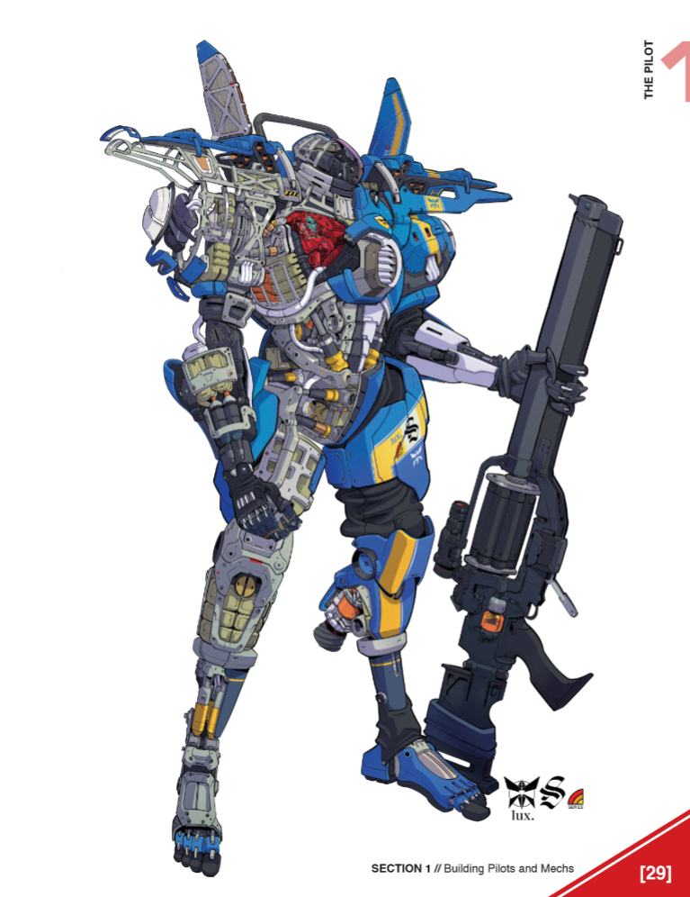 Le meccaniche di base si fondano sul tiro di un d20 contro una soglia fissa (10 per le prove di abilità, variabile per attacchi e salvataggi). I modificatori possono includere accuracy (dadi bonus d6) e difficulty (dadi malus d6), in una struttura elegante che mantiene le probabilità equilibrate. Il vero centro di gravità, però, è il sistema di licenze: ogni personaggio cresce attraverso i cosiddetti license levels (LL), avanzando sia come pilota che come costruttore di mech. Ogni nuovo livello sblocca accesso a tecnologie, armamenti e chassis di diverse case produttrici, consentendo una personalizzazione progressiva e profondissima.