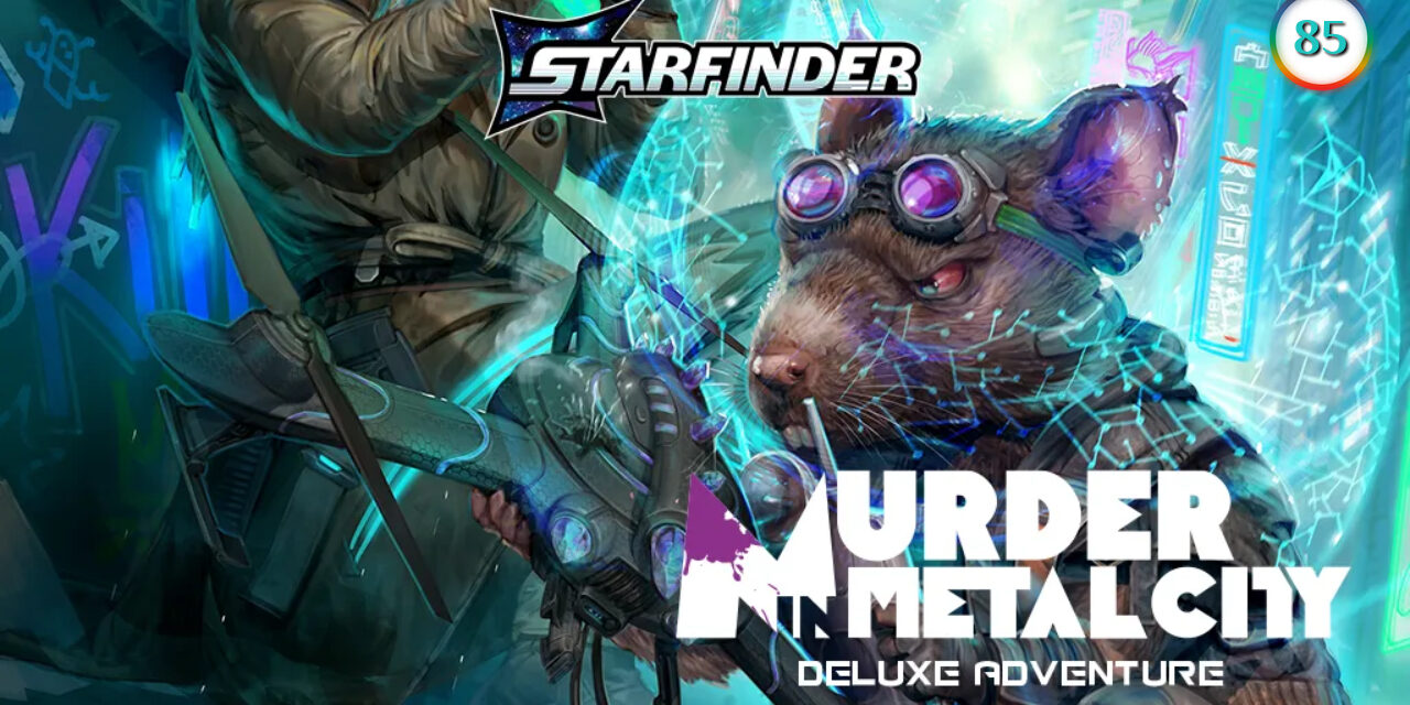 In uscita il prossimo 31 luglio 2025, Murder in Metal City è la prima avventura ufficiale per Starfinder Second Edition, pubblicata da Paizo Inc. e scritta da Jenny Jarzabski. Questo modulo, che abbiamo avuto il privilegio di leggere in anteprima, è progettato come introduzione perfetta alle nuove meccaniche del gioco e si presenta come un’indagine fantascientifica brillante e coinvolgente, ambientata nel cuore scintillante del pianeta-macchina Aballon. Ambienti high-tech, fazioni sintetiche, reliquie aliene e una morte misteriosa intrecciano una trama densa e stratificata, che sfrutta con intelligenza le potenzialità investigative e cinematiche del nuovo regolamento. L’avventura, oltre che in edizione digitale, sarà disponibile anche in edizione fisica con un bellissimo box venduto a $39.99 e che conterrà tutti i contenuti che trovate descritti in fondo alla mia recensione, che in quella digitale sono stampabili (mappa a colori a due facciate, token, schede…). La recensione è il più possibile senza spoiler, ma specifica le dinamiche dei vari capitoli dell’avventura introduttiva e quindi è consigliata soprattutto a chi intende masterarla al proprio gruppo.