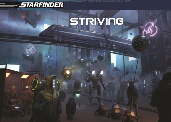 Completano il prodotto una varietà di materiali di supporto: una Flip-Mat a colori per le scene chiave, token stampabili per mostri e PNG, numerosi handout narrativi, una guida per il GM con tracker per indizi e oggetti, e schede con statblock ridotti ma ben leggibili. L’aspetto grafico e artistico è impeccabile, con illustrazioni che restituiscono perfettamente l’atmosfera cyber-noir e aliena di Striving e delle sue creature, tra cui spiccano gli Anaciti, i Smog Scamps e gli inquietanti Dragonet di luce dura.