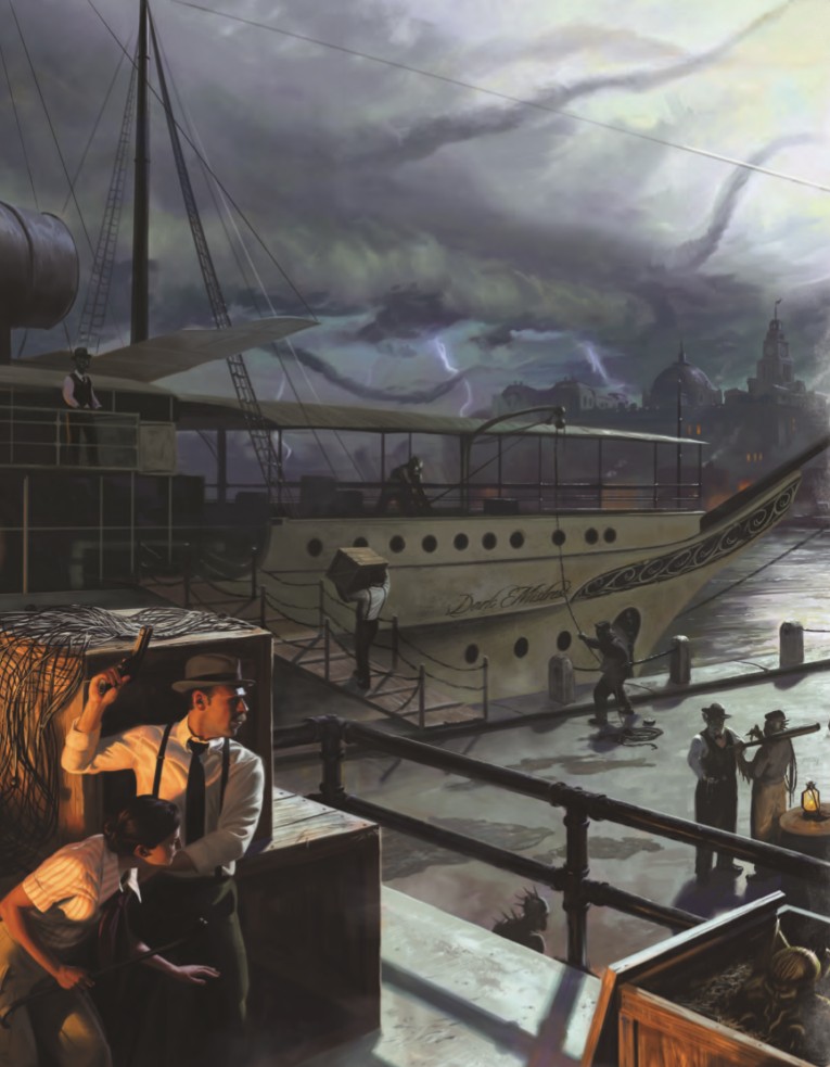 A completare il manuale troviamo un’avventura introduttiva, Terrore al Tick-Tock Club, progettata per accompagnare il gruppo nei primi passi all’interno del sistema e dell’ambientazione. Ambientata in un contesto urbano e sociale, l’avventura guida gli investigatori attraverso una rete di indizi e tensioni crescenti, mostrando come il soprannaturale si insinui progressivamente in una vicenda che, in apparenza, potrebbe sembrare soltanto criminale o folkloristica. È uno scenario efficace come strumento di onboarding, capace di mettere in luce le potenzialità del sistema senza sovraccaricare il tavolo.