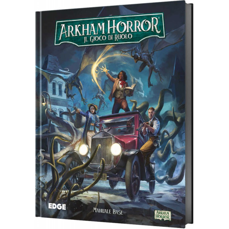 Pubblicato in questa edizione da Edge Studio, su licenza Fantasy Flight Games, Arkham Horror: Il Gioco di Ruolo arriva sul tavolo come un manuale base completo che ambisce a tradurre in forma ruolistica uno degli universi lovecraftiani più riconoscibili e stratificati degli ultimi anni. Non si tratta di una semplice trasposizione tematica, ma di un progetto che prende l’identità narrativa e visiva della linea Arkham Horror e la rielabora in un linguaggio pensato specificamente per il gioco di ruolo, con l’obiettivo di sostenere campagne investigative di medio e lungo respiro ambientate negli anni Venti, in un New England sospeso tra quotidianità, decadenza e intrusioni dell’ignoto.