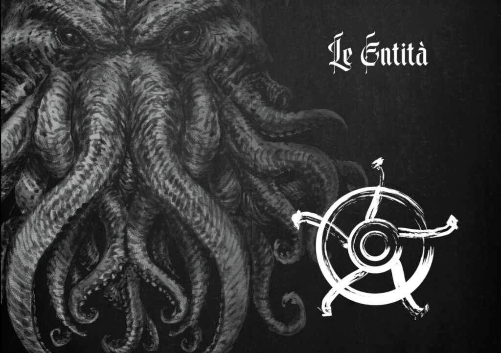 Il cuore concettuale del gioco è chiarissimo sin dall’introduzione: Elder Mythos è un GDR in cui le persone al tavolo incarnano entità divine che vivono al di là del tempo e dello spazio, “creature così abominevoli e spaventose che non si possono e neppure si vogliono nominare”. Le Entità non sono pedine sulla scacchiera, ma i giocatori stessi: tirano i fili dello Scenario da una posizione quasi sempre esterna, muovendo culti, ministri, creature e fenomeni cosmici per instillare orrore e corruzione nel mondo materiale. La partita diventa una conversazione condivisa, in cui l’esito dei tiri di dado guida zoom narrativi che si avvicinano alle azioni delle Risorse, come se la telecamera di un cortometraggio stringesse sui momenti chiave della rovina. Il manuale cita esplicitamente tra le sue fonti Call of Cthulhu, The Quiet Year e altri giochi legati al Year Zero Engine, e l’impressione è quella di un design che prende elementi noti per spingerli verso un territorio più astratto, competitivo e “mitologico”.