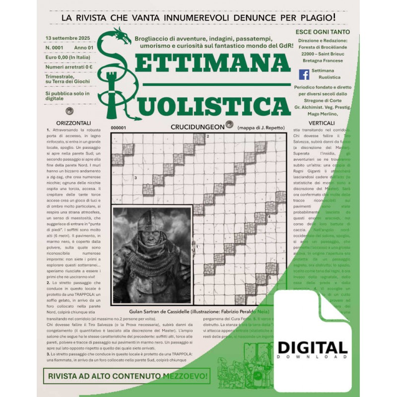 La Settimana Ruolistica è la rivista digitale gratuita dedicata al mondo dei giochi di ruolo, ricca di avventure brevi, spunti immediatamente giocabili, bestiari originali, rubriche, interviste e contenuti creativi per tutti i tavoli.