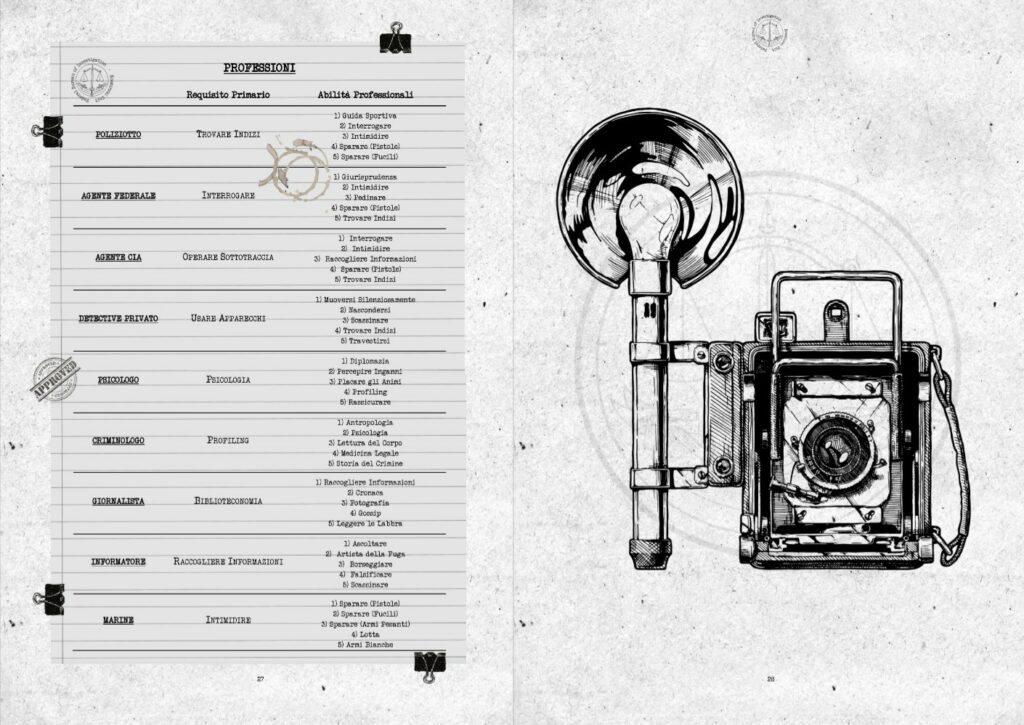 La creazione del personaggio è solida e ben strutturata. Le professioni disponibili, che spaziano dal poliziotto all’agente federale, dal criminologo allo psicologo, dal giornalista al marine, definiscono ruoli chiari e complementari all’interno dell’Unità K. Ogni professione possiede requisiti primari che ne determinano il contributo all’indagine, incentivando la collaborazione e rendendo evidente come nessun personaggio possa essere autosufficiente. Il gioco funziona al meglio quando il gruppo lavora come una vera squadra investigativa, mettendo in comune competenze e intuizioni.