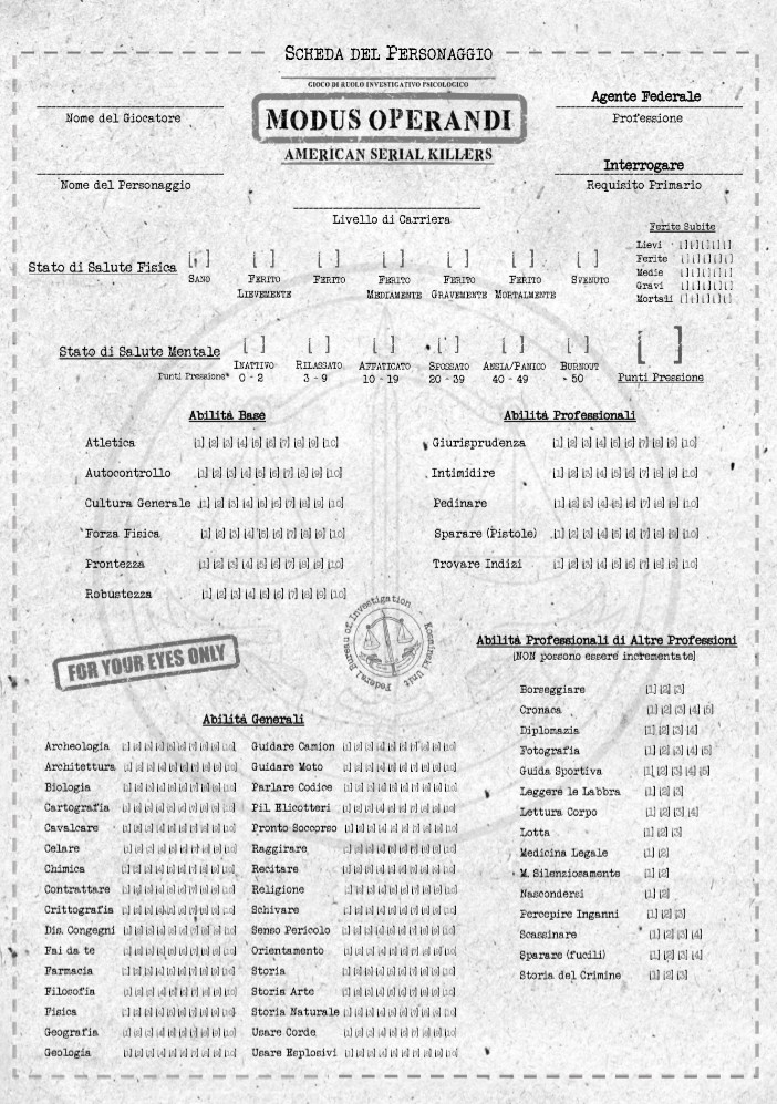 Il regolamento di Modus Operandi: American Serial Killers si apre con un preambolo che è già una presa di posizione culturale. Il riferimento all’abisso e alla riflessione filosofica non è un esercizio di stile, ma una chiave di lettura dell’intero progetto. Qui non si interpretano protagonisti idealizzati né figure eroiche destinate a vincere, ma professionisti imperfetti, spesso stanchi e sotto pressione, chiamati a confrontarsi con la parte più oscura della mente umana. L’ambientazione negli Stati Uniti degli anni Settanta non è una scelta estetica, ma una decisione tematica consapevole, legata a un periodo storico segnato da un’esplosione dei casi di omicidio seriale e dalla nascita delle moderne tecniche di criminal profiling. Il manuale dedica spazio a contestualizzare questo scenario, fornendo un solido impianto storico e culturale che rafforza la credibilità del gioco.