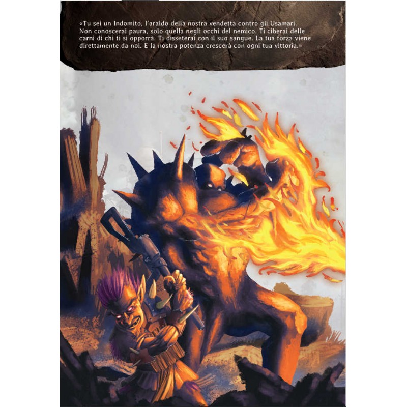L’ambientazione nasce da una frattura netta, la Disfatta, evento che ha spezzato il dominio delle Progenie Oscure, popoli un tempo temuti e ora ridotti ad una sopravvivenza frammentaria, braccati e marginalizzati, mentre le nazioni Usamare avanzano con una superiorità tecnologica ed ideologica che trasforma la guerra in un processo sistematico di estinzione. In questo contesto si muovono gli Indomiti, guerrieri elevati dalle Molte Voci, entità primordiali che sono al tempo stesso madri, prigioni e giudici, capaci di concedere potere ma anche di imporre un destino. La scelta di raccontare il mondo attraverso una voce interna, un vecchio orco che si rivolge direttamente al lettore, non è solo un espediente stilistico, ma un modo per radicare l’ambientazione in una memoria collettiva fatta di perdita, orgoglio e rancore, evitando la neutralità descrittiva e spingendo fin da subito verso un coinvolgimento emotivo.