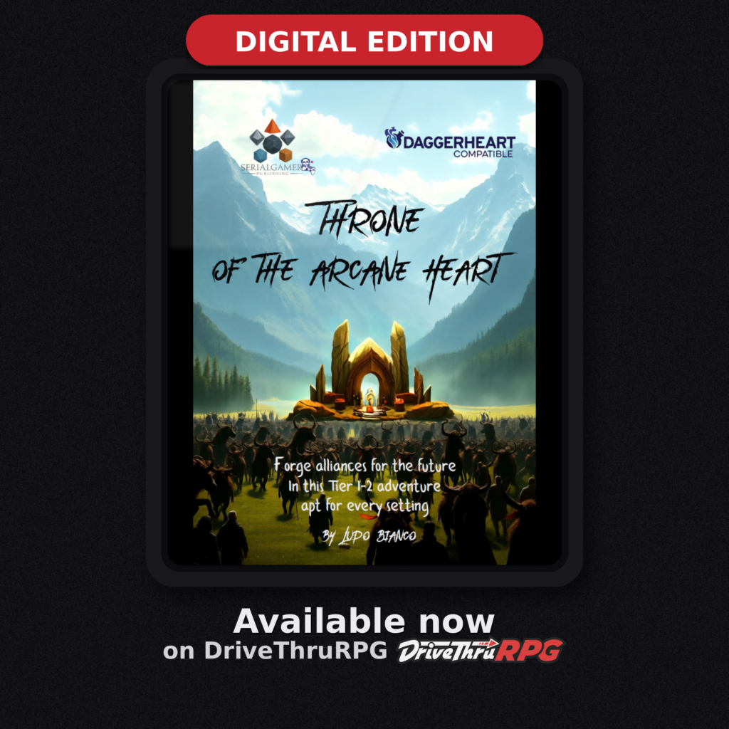 Serial Gamer Publishing annuncia il lancio ufficiale de Il Trono del Cuore Arcano, campagna fantasy completa compatibile con Daggerheart, disponibile da ora in formato digitale su DriveThruRPG in italiano ed inglese al prezzo di 8โฌ.