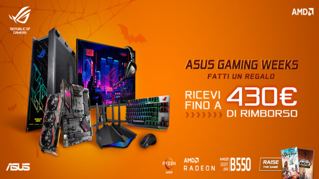 ASUS annuncia che dal 26 ottobre fino al 22 novembre è attiva una promozione su tantissimi prodotti gaming con la formula del rimborso fino a 430 euro. La promozione copre…